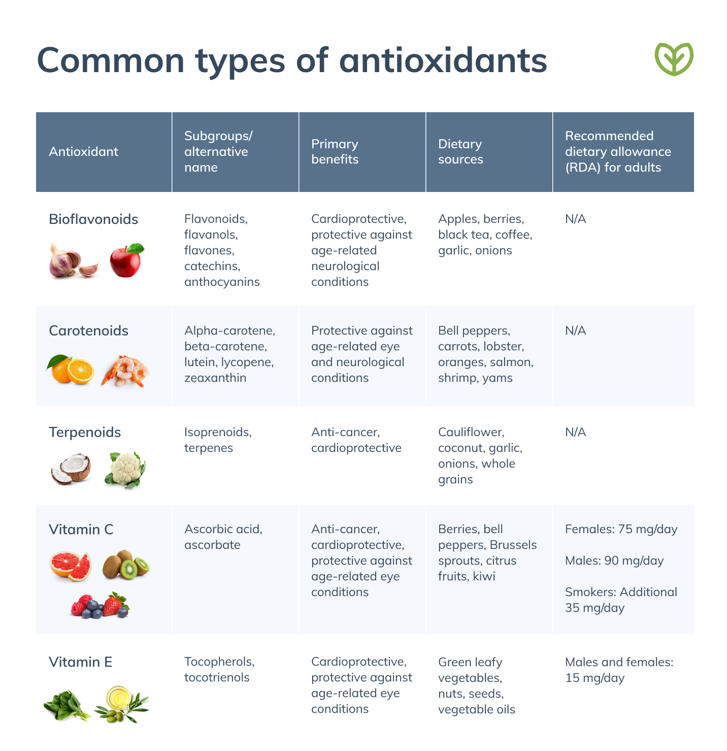 • Systematic review and meta-analysis of 19 studies found CoQ10 supplementation to improve markers for oxidative stress demonstrated by and increase in total antioxidant capacity (TAC), glutathione peroxidase (GPx), superoxide dismutase (SOD), and catalase (CAT), and decrease in malondialdehyde (MDA) (23)