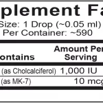 Liquid Vitamin D3 with K2 includes 10 mcg of MenaQ7® PRO, the most widely studied form of vitamin K2 as MK-7, and 1,000 IU of vitamin D3 per serving. The tasteless liquid formula can easily be combined with any beverage.