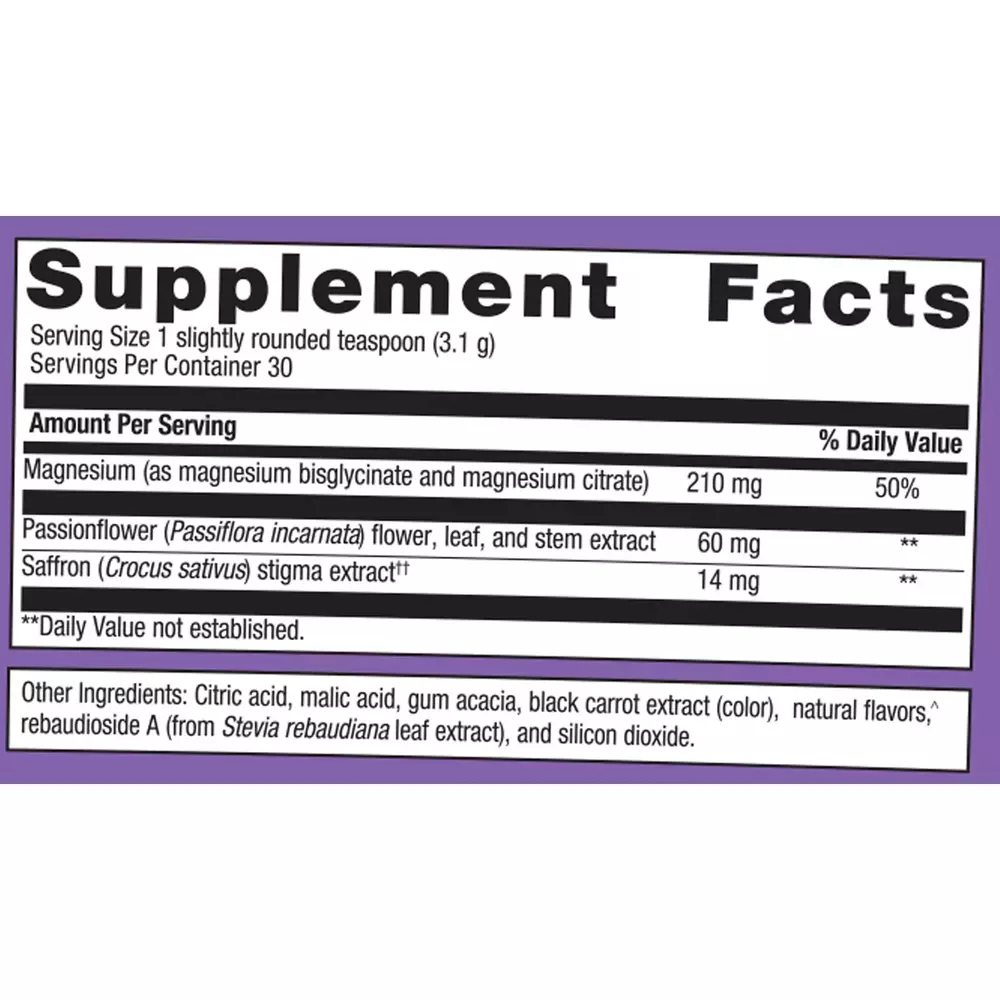 Delivers 3-in-1 sleep support, supporting deeper sleep, more time asleep, and less sleep disturbance. High potency formula, scientifically designed to relax your body and mind for better sleep. Up to 4x better absorbed Magnesium Glycinate Complex. Includes Saffron and Passionflower to support sleep/wake cycle and the body’s response to overstimulation. . Delicious mixed berry flavor with other natural flavors.