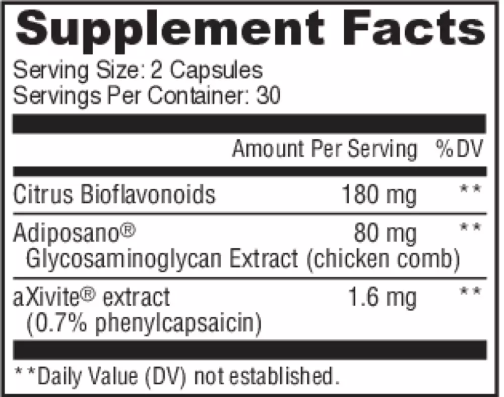 Omne Diem™ Thermogenic Weight Management contains Adiposano®, a natural concentrated source of glycosaminoglycans, plus aXivite® phenylcapsaicin for reliable weight management support when used in conjunction with a healthy diet and exercise program.